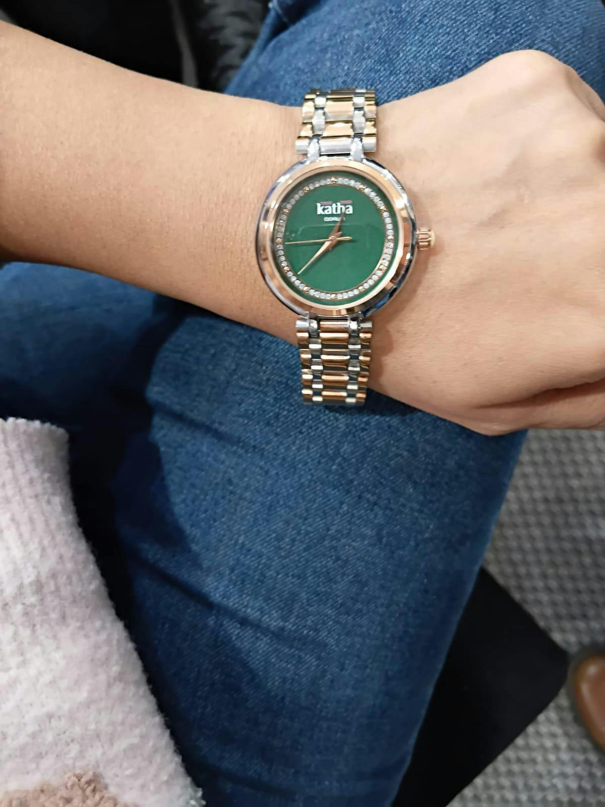Qorum Katha Ladies Watch – Emerald Green Dial, Two-tone Rose Gold plated Stainless Steel Strap