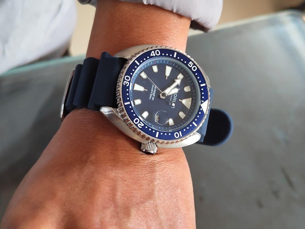 Qorum Reef Men’s Automatic Watch – Royal Blue Dial, Date Display, Silicon Strap